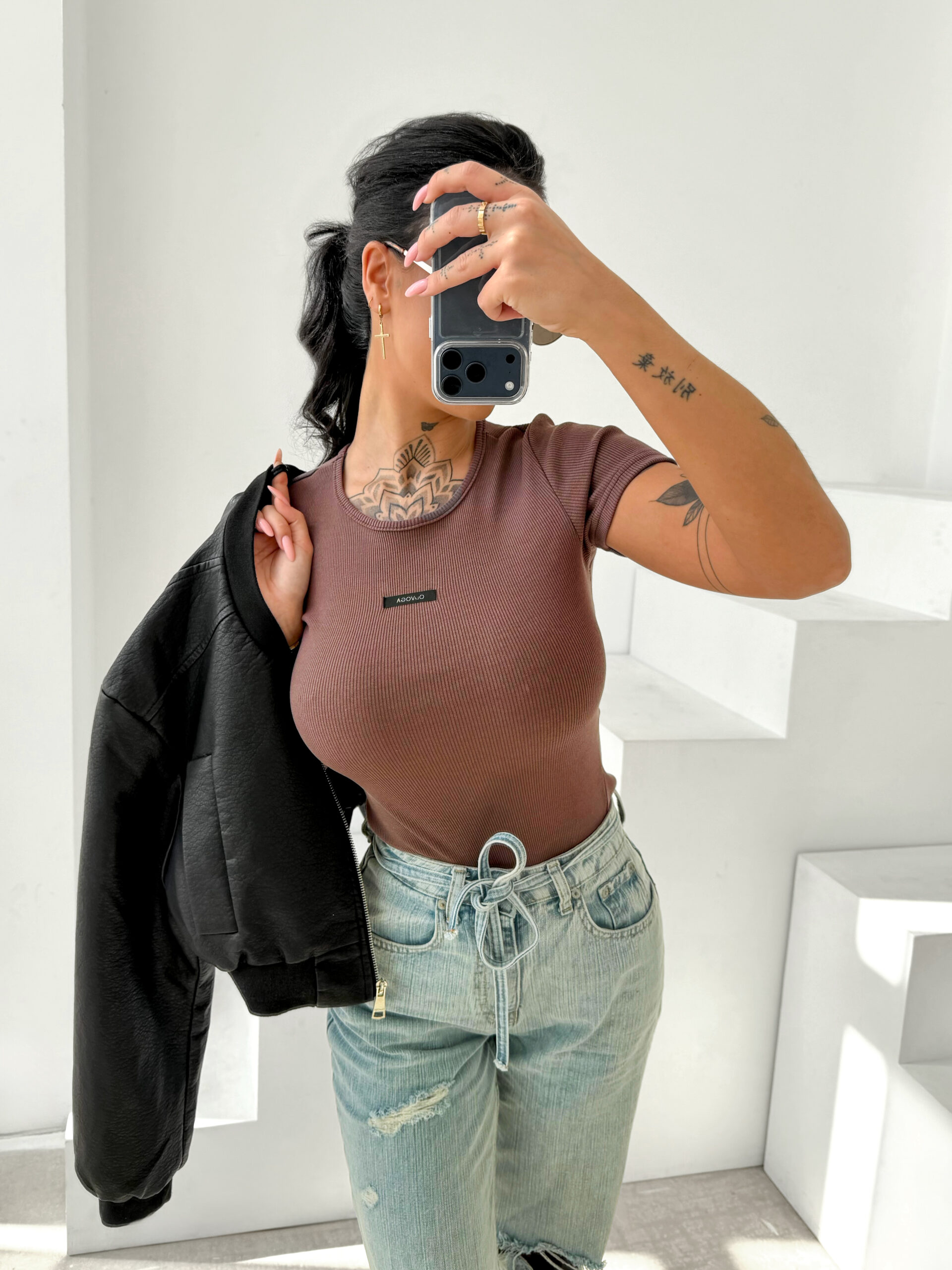 • Városi Elegancia: Párosítsd egy magas derekú farmerrel és egy oversize blézerrel a kifinomult, mégis laza „street style” megjelenésért. 🧥🏙️